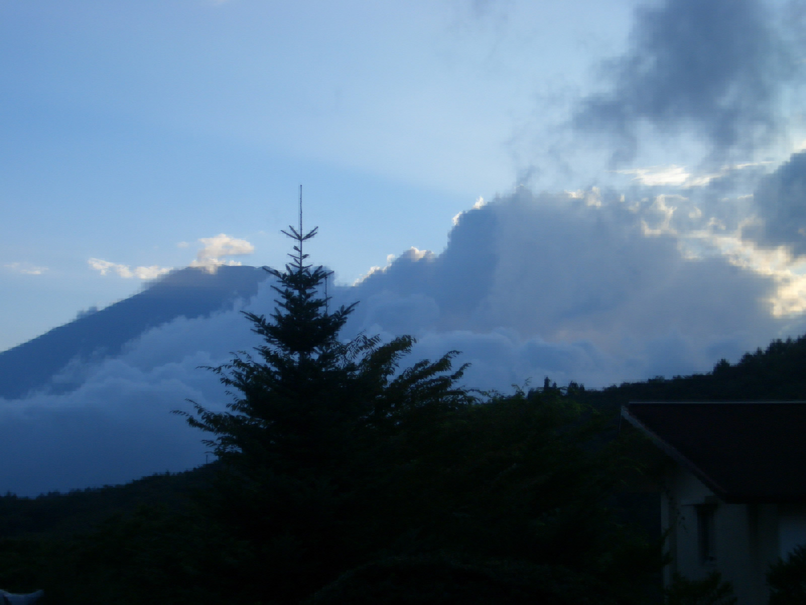 ,上一张远望云海中的富士山的照片吧,再来一张车开在云彩里时迷雾中的富士山路,看