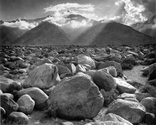 对于黑白,亚当斯可谓是一切尽在掌握之中。大画幅照相机拍摄,小光圈的拍摄条件